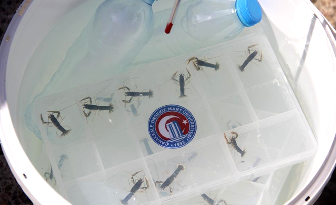 Genç ıstakoz bireyleri, Avcılık ve İşleme Bölümü Öğretim Üyeleri Prof. Dr. Adnan Ayaz, Prof. Dr. Uğur Altınağaç ve Dr. Öğretim üyesi Alkan Öztekin’den oluşan bir ekip tarafından Çanakkale Boğazı’nda uygun bir derinlikte bulunan suni resif ortamına bırakıldı.