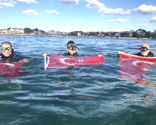 Dalgıçlar, dalışın sonunda su altında Türk bayrakları açtı.
