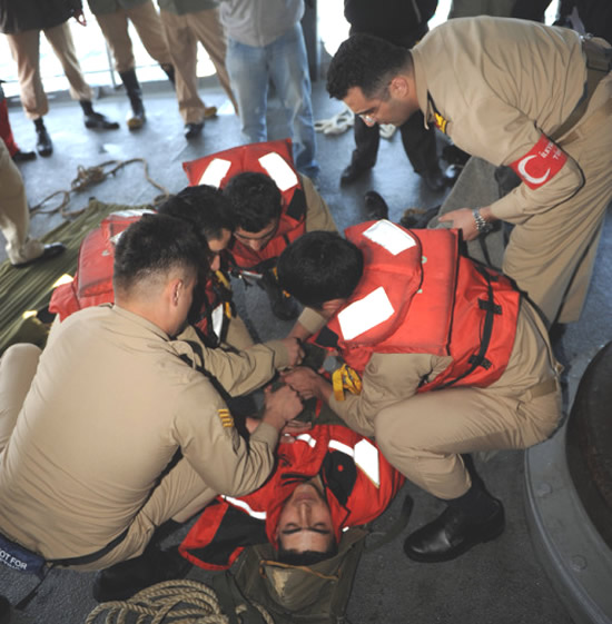 Uluslararası gözlemcilerin de izlediği tatbikatın, sabah gerçekleştirilen ilk safhasında, kaza geçirip yardım çağrısında bulunan bir ticaret gemisinin, suda mahsur kalan 5 personelinin, hem havadan helikopterle hem de askeri gemilerdeki personel tarafından kurtarılıp hastanelere sevk edilmesi senaryosu gerçekleştirildi.