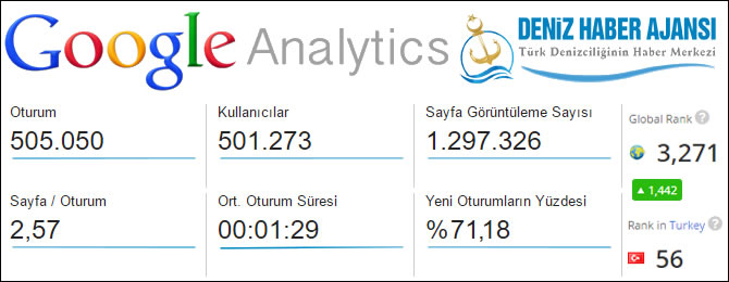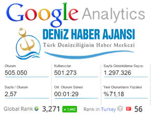 Google Analytics verilerine göre, 15 Ağustos 2016 tarihinde 00.01 - 23.59 saatleri arasında 505 bin 50 farklı oturum üzerinden 1 milyon 297 bin 326 sayfa açılımı yapılan Deniz Haber Ajansı'nın resmi haber portalı, dünyanın denizcilik sektörüne yönelik yayın yapan siteleri arasında açık ara birinciliğe otururken, Türkiye'de yayın yapan tüm siteler arasında ise 56'ncı sıraya yükseldi.