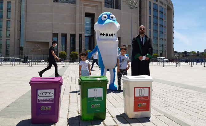 5 Haziran Dünya Çevre Günü’nde çevre kirliliğine ilişkin farkındalık oluşturmak isteyen bir grup arkadaş, Çağlayan’daki İstanbul Adalet Sarayı önüne gelerek mini bir gösteri düzenledi. Gösteride, balık kostümü giyen bir kişi, denizden çıktığını vurguladığı atıkları atık kutularına atarak, atıkların denizlere atılmaması gerektiğinin önemine işaret etti.