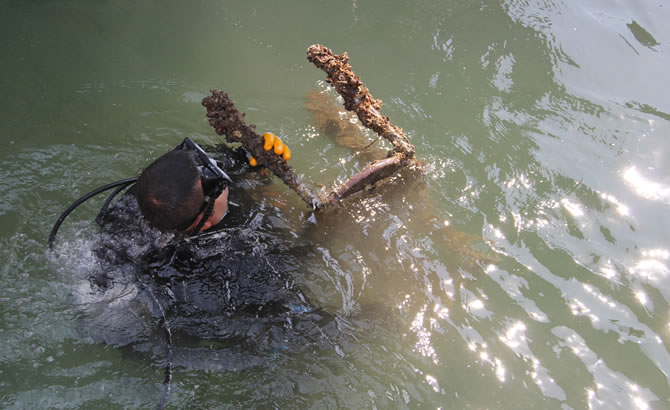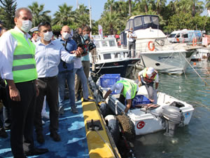 Etkinliklerin ikinci bölümü ise kent merkezindeki Çamlıbel Balıkçı Barınağında gerçekleştirildi. Balık ekmek teknelerinin de yer aldığı Balıkçı Barınağında, Mersin Büyükşehir Belediyesinden 3, Sahil Güvenlik Akdeniz Bölge Komutanlığından 2 olmak üzere 5 dalgıç, tekneler arasında denize dalarak temizlik yaptı. Mersin Büyükşehir Belediye Başkanı Vahap Seçer’in de katıldığı etkinlikte, yaklaşık yarım saat süren temizlikte dalgıçların denizden çıkardıkları çöpler şaşkınlıkla izlendi. Dalgıçlar, denizden 6 sandalye, iki araba lastiği ile çok sayıda şişe, kutu ve plastik çıkardı. Başkan Seçer, denizden çıkan onca çöpü görünce, vatandaşlara sitem ederek, “Denizde balık dışında ne ararsan var” yorumunu yaptı.