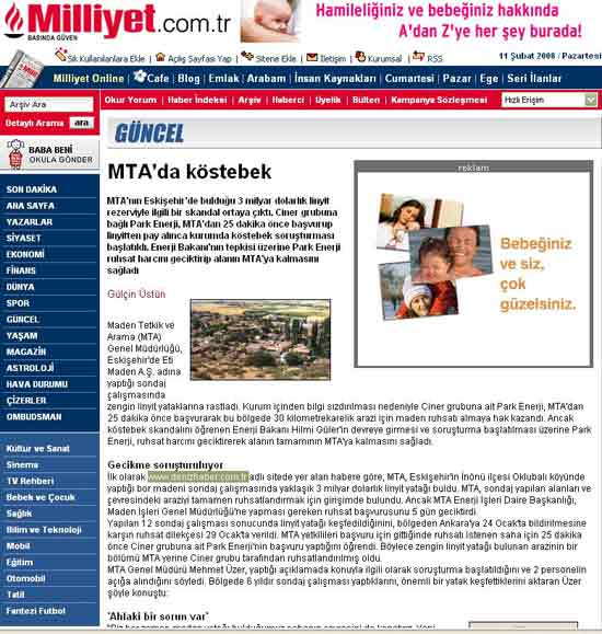 Maden Teknik Arama Genel Müdürlüğü'ndeki köstebek haberi ile internet basınında gündem belirleyen DenizHaber Ajansı ve haber portalı www.denizhaber.net 'nin yaptığı haber; bugün HÜRRİYET Gazetesi'nde sürmenşetten yayınlanırken, Radikal Gazeetsi'nde birinci sayfadan, MİLLİYET Gazetesi'nde ise yine birinci sayfadan haberi manşet altı verdi.