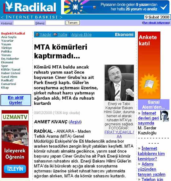 MTA'nın sondaj sonucu bulduğu zengin linyint yatağı, Ciner Grubuna ait Park Enerji tarafından erken başvuru ile ruhsatlandırılması MTA'da köstebek mi var? sorusunu akıllara getirdi.