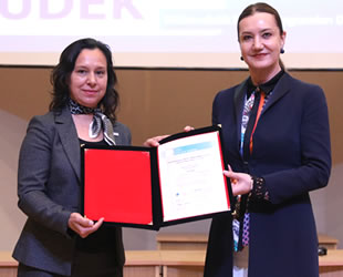 MÜDEK Yönetim Kurulu Başkan Yardımcısı Prof. Dr. Müjgan Sağır, yaptığı sunum ile MÜDEK hakkında bilgi verdi. Prof. Dr. Müjgan Sağır, sunumunun ardından Rektör Prof. Dr. Nükhet Hotar’a akreditasyon belgesini takdim etti.