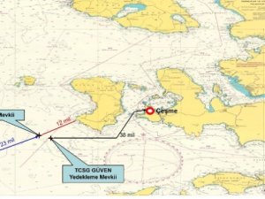 Sakız Adası güneybatısında uluslararası sularda yelken direği kırılan tekne, Sahil Güvenlik korveti "TCSG Güven" tarafından kurtarılarak Çeşme Limanı'na çekildi.