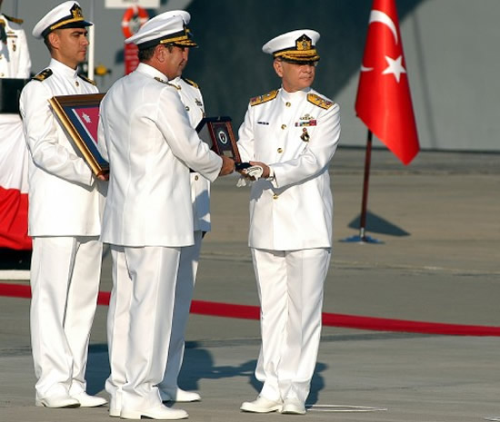 ''Bölgedeki barış ve istikrarın en büyük teminatı Türk Donanmasıdır. Bu teminat, Türk Silahlı Kuvvetleri mensubu olmanın bizlere getirdiği görev ve sorumluluk bilinciyle hareket eden, daima ileriye bakan, yaratıcı, değişen teknik ve risklere anında adapte olabilen, etik ve ahlaki değerlere önem veren, örf ve adetlere bağlı, Atatürkçü düşünce sistemine sahip Donanma Komutanlığının seçkin personeliyle devam edecektir.''