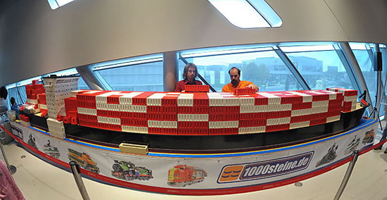 Almanya'nın Wolfsburg kentindeki Phaeno Bilim Merkezi'nin ziyaretçileri, 7.29 metre uzunluğunda ve yaklaşık 500 kilo ağırlığındaki konteyneri yapmak için farklı renklerde 400 bin lego parçasını biraraya getirdi.