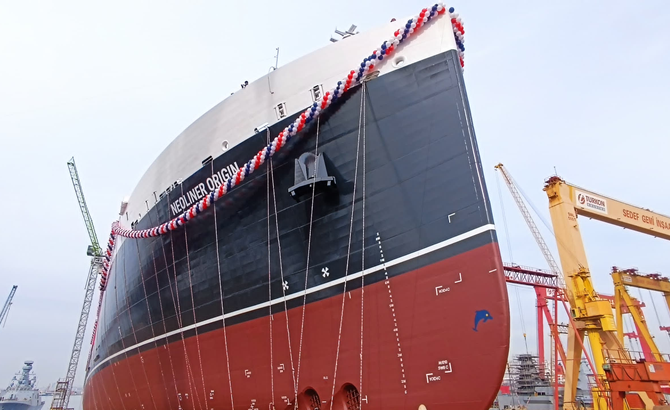 Dünyanın ilk ticari yelkenli roro gemisi Neoliner Origin , Türkiye'deki RMK Marine tersanesinde denize indirildi.