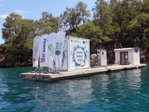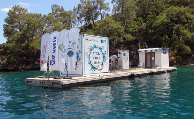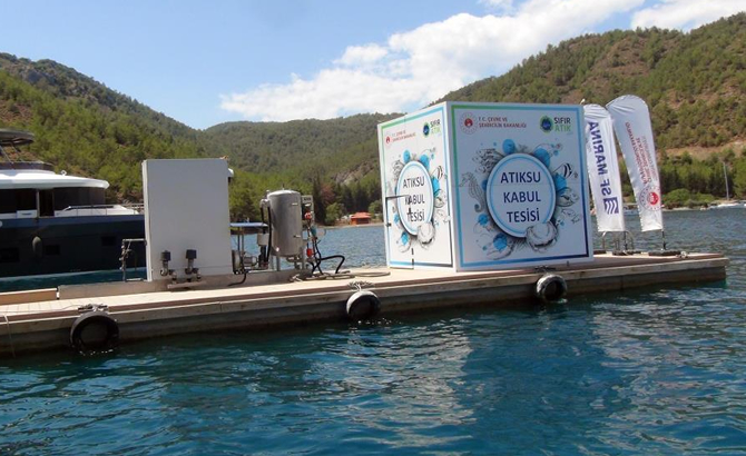 Çevre, Şehircilik ve İklim Değişikliği Bakanlığının Ar-Ge projesi olan yüzer atık su ve arıtma tesisi, teknelerdeki atık suları alabilmekte ve aynı noktada bu atık suları yüksek kalitede ileri teknoloji ile arıtabiliyor. Bakanlığın ‘Denizcilik Atıklar Uygulaması’na kayıtlı olan sistem, atık suyunu veren teknelerin mavi kartlarına atık su bilgilerini işleyerek belge verebiliyor. Tesis Fethiye Göcek Körfezi Kille koyunda konumlanırken, 1 yıldır hizmet veriyor.