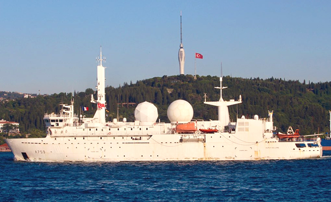 Fransız zırhlı istihbarat gemisi Dupuy de Lome, İstanbul Boğazı’dan geçerek Karadeniz'e giriş yaptı.