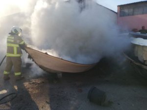 Edinilen bilgiye göre, olay, Organize Sanayi Sitesi’nde meydana geldi. Aşırı sıcak nedeniyle çalışma esnasında tekne alev andı.