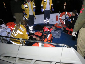İhbar üzerine Küçükkuyu beldesinden bölgeye giden Sahil Güvenlik Komutanlığına bağlı ekipler, denizden biri 3 aylık kız bebek olmak üzere 5 kişinin cesedini çıkardı. Ekipler teknenin battığı bölgeden 9 kişiyi sağ kurtardı. Sağlık durumu ciddi 3 kişi, ambulanslarla Edremit Devlet Hastanesine kaldırıldı.