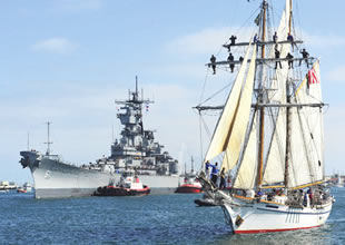 USS Iowa Los Angeles, California'da müze oluyor. İkinci Dünya Savaşı dönemi savaş gemisi USS Iova, müze haline getirileceği Los Angeles San Pedro Limanı'na demirledi. Çevresi güvenlik botları ve kurtarma ekipleri ile sarılmış olarak yolculuğuna devam eden 887 fit uzunluğundaki 58,000 ton ağırlığındaki savaş gemisi ve Sahil Güvenlik botlarını bulunduğu filo, limana girişini meraklı bakışlar eşliğinde yaptı.