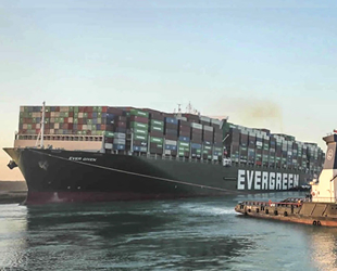 Ever Given isimli dev konteyner gemisi, kum fırtınası ve kötü hava koşulları nedeniyle görüş mesafesinin düşmesi sonucu 24 Mart'ta Süveyş Kanalı'nda kıyıya çarparak kaza yapmıştı.