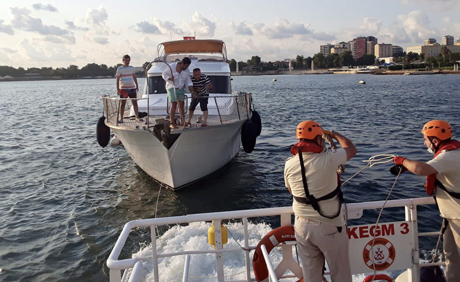 İçerisinde 4 kişi bulunan tekne, KEGM-3 botu tarafından kurtarılarak Kalamış Marina'ya yanaştırıldı.