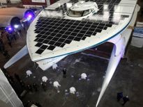 Üzerinde 500 metre kare güneş paneli bulunan dünyanın en büyük güneş enerjili katamaran tipi yat, Almanya'nın kuzeyindeki Kiel kentinde suya indirildi. Alman mecaracı kaptan Raphael Domjan, güneş enerjili yatla dünya turuna çıkacak.