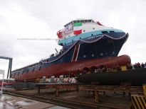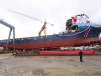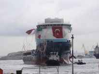 Tuzla'daki Selah Tersanesi'nde inşa edilen platform destek gemisi 90 metre boyundaki 'IEVOLI IVORY' adlı gemiyi denizle buluştu.