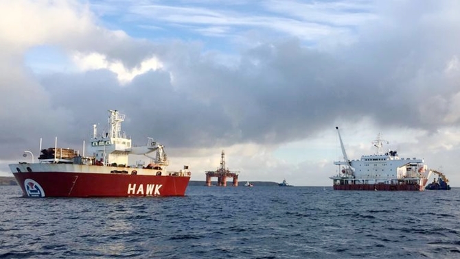 Ağustos ayında İskoçya'nın Kuzeyinde fırtınaya yakalanarak karaya oturan ve büyük hasar gören TRANSOCEAN WINNER isimli petrol platformu, sökülmek amacıyla Aliağa'ya getiriliyor.