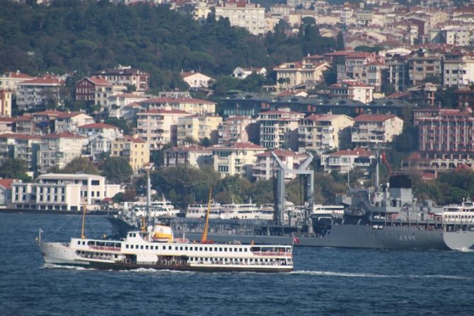 Türk Donanmasına ait A-595 borda numaralı “ Yarbay Kudret Güngör “ isimli savaş gemisi , akşam saatlerinde İstanbul Boğazı’ndan geçti.