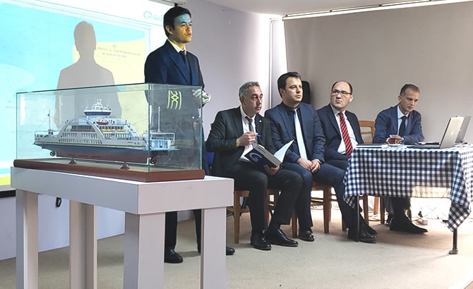 Gestaş Teknik Müdürü Ali Dinçer Hıdımoğlu, filodaki en yeni ve en güvenli gemi olan Gelibolu Gemisi’nin Gökçeada 1 Gemisi’nden daha iyi seyir alabileceğini, maket üzerinde verdiği örneklerle dile getirdi.