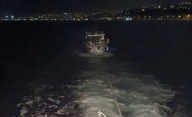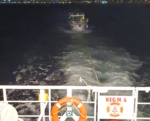 Tekne, Kıyı Emniyeti Genel Müdürlüğü’ne ait KEGM-6 hızlı tahlisiye botu ile yedeklenerek West Marina’ya çekildi.