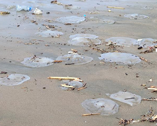 Samandağ’da bulunan 14 kilometrelik sahil şeridi boyunca kıyıya vuran denizanalarını ilk defa gören vatandaşlar şaşkınlığını gizleyemedi.