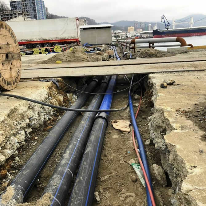Çalışmalarını tamamladığımız yangın söndürme sistemlerine bağlı olarak liman sahamızda yürütülen operasyonlar sürecin de saha sulamasını sağlayacak sistemi de kurduk.
