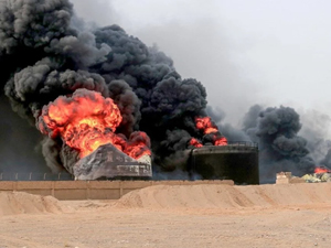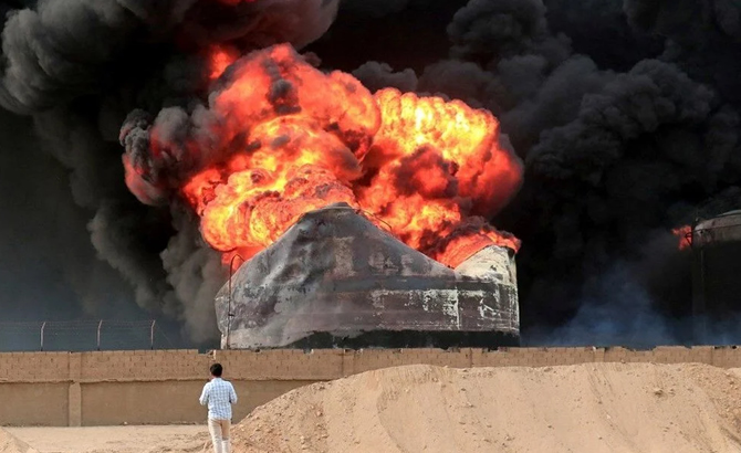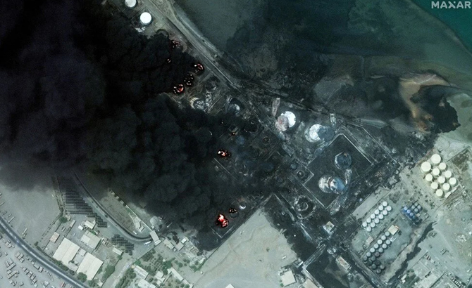 Yüksek çözünürlüklü uydu görüntüleri, alevlerin Hudeyde Limanı'nda ağır hasar görmüş bir yakıt depolama alanını tükettiğini gösterdi.