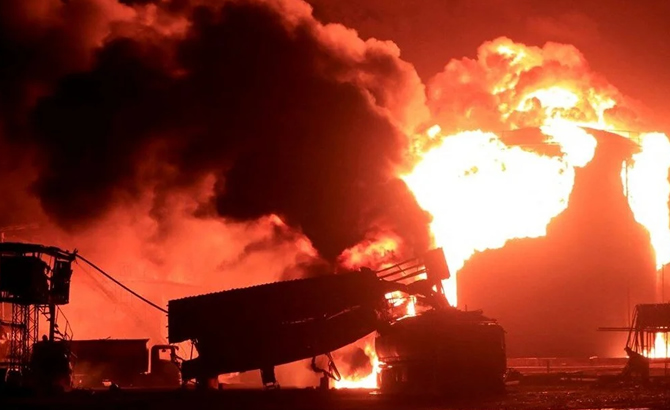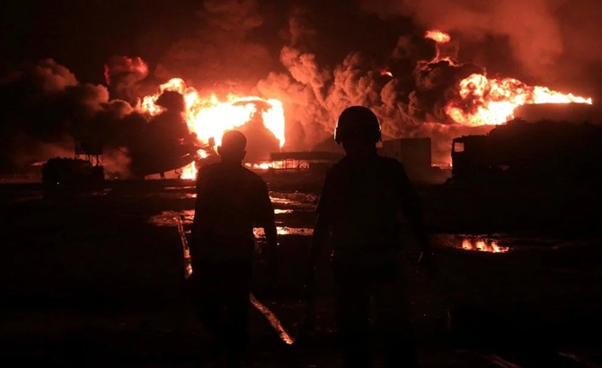 Saldırıdan günler sonra itfaiye ekipleri, limanda süren büyük yangını kontrol altına almak için mücadele ediyor.