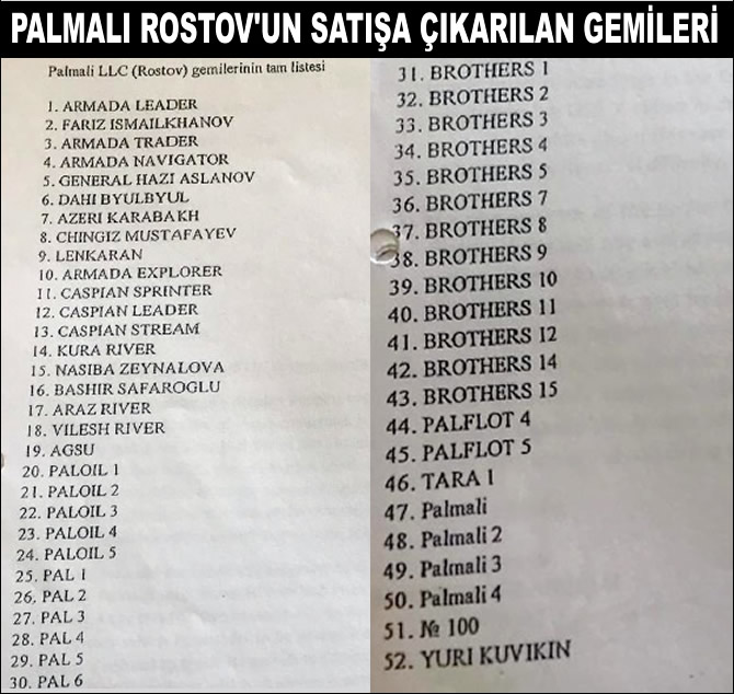 Dün akşam saatlerinde Rostov İflas Mahkemesi tarafından yapılan açıklamada, Palmali LLC'nin 46'si değişik taşıma kapasitesine sahip petrol tankeri ile birlikte 52 adet geminin blok halinde 6 milyar 300 milyon rubleye (95 milyon dolar) açık artırma ile satışa çıkarıldığını kaydedildi.