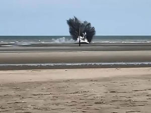Koksijde bölgesindeki Oostduinkerke’de bulunan sahilde İkinci Dünya Savaşı’ndan kalma İngiliz yapımı 30 kilogramlık Bomba tespit edildi.