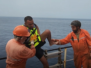Mürettebat tarafından ilk müdahaleleri yapılan kazazedeler daha sonra SAR helikopteri tarafından gemiden alındı.