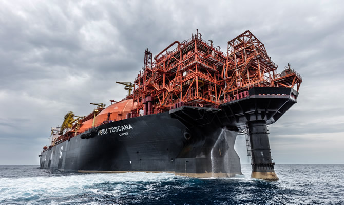 İtalya'nın yüzde 4 enerjisini sağlayan FSRU TOSCANA isimli yüzer enerji terminali, yıllık 700 milyon metreküp doğalgaz'a eşdeğerde 450 milyon metreküp LNG üretimi gerçekleştiriyor.