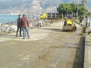 İskenderun sahil yürüyüş yolunda çalışmaya koyulan ekipler, fırtınanın yola savurduğu kumu temizledi. Sahilde yürüyüş yapan vatandaşların daha temiz bir ortamda spor yapmalarını sağlamak ve görüntü kirliliğinin önüne geçmek için çapılan çalışma sahil güzergâhında devam etti.