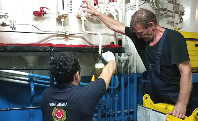 Yapılan aramada gemi tanklarında beyan edilmeyen 63,3 ton akaryakıt tespit edildi.
