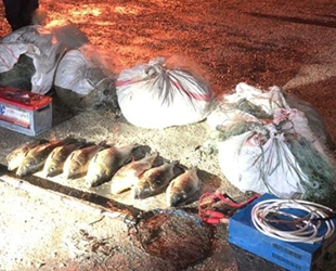 Operasyonda ağ, 1000 metre misina balık ağı, şok cihazı, akü, balık avlamak için kullanılan elektrikli kepçe, ruhsatsız sandal ile 450 metre ağ ele geçirildi.