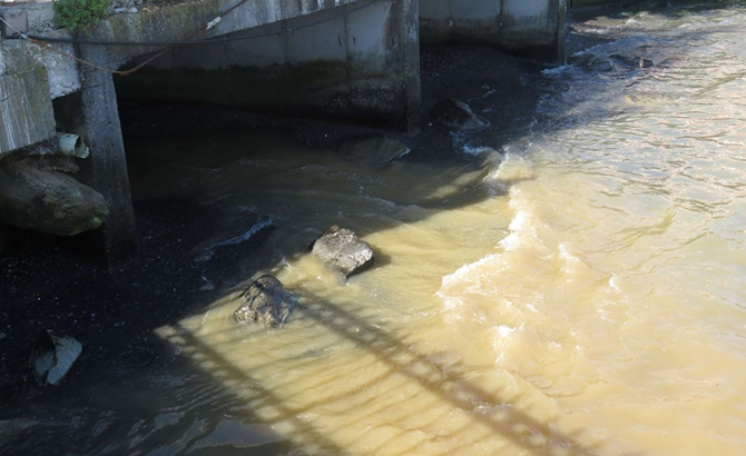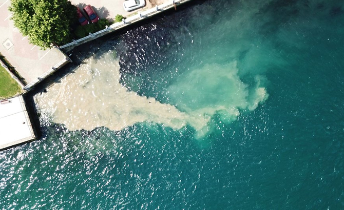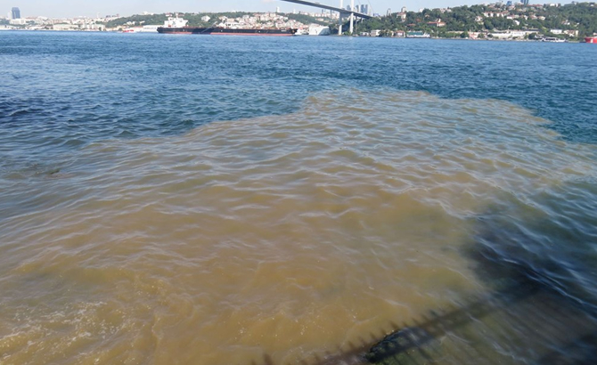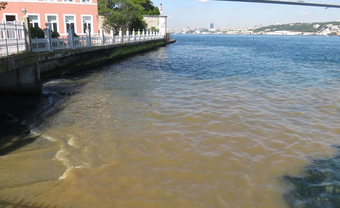 Üsküdar Beylerbeyi Sarayı'nın hemen yanında bulunan kanaldan İstanbul Boğazı'na akan su denizin rengini değiştirdi.
