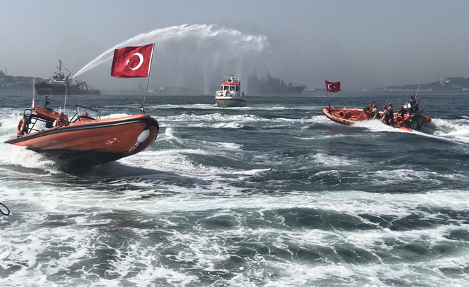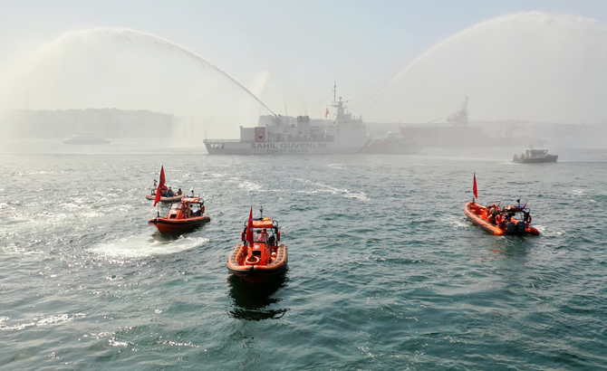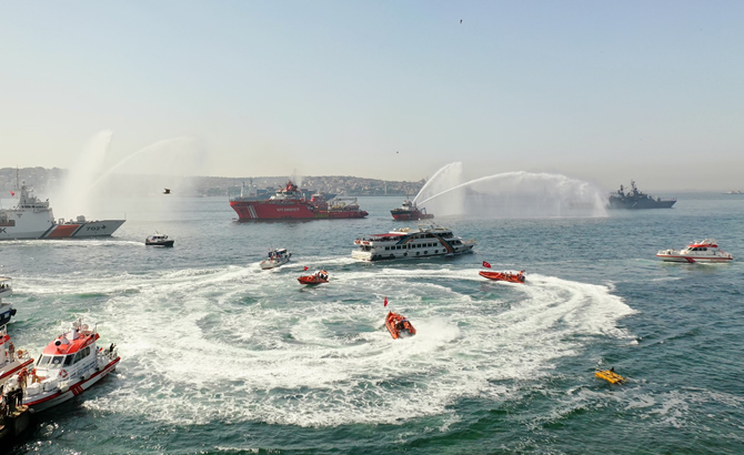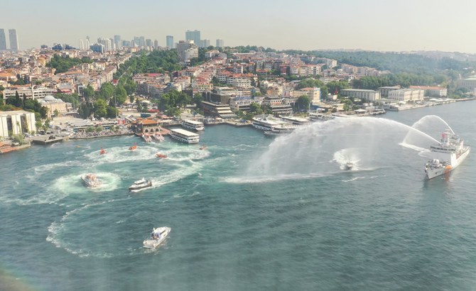 Öte yandan Kıyı Emniyet ekipleri tarafından da denizde botlar ve su tanklarıyla yapılan gösteriler vatandaşlar tarafından büyük ilgi gördü.