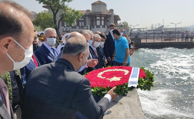Türbede edilen duaların ardından Bakan Karaismailoğlu, türbede bulunan özel defteri imzaladı. İmza töreninin ardından Beşiktaş iskeleden denize çelenk bırakılmasıyla tören sona erdi.