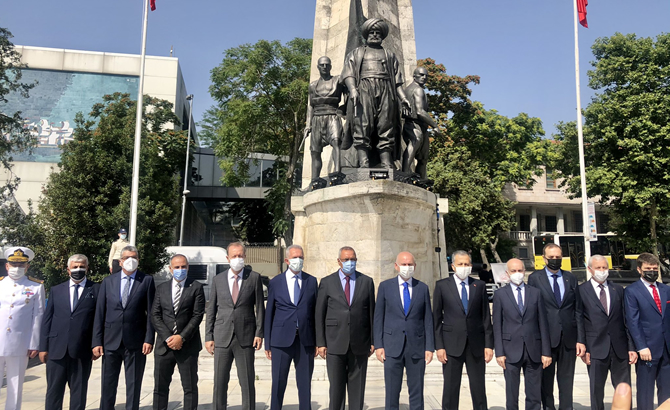 Barbaros Hayrettin Paşa anıtı önünde Saygı Duruşu ve İstiklal Marşı’nın okunmasıyla başlayan tören, Bakan Adil Karaismailoğlu ve Vali Ali Yerlikaya’nın Barbaros Hayrettin Paşa Türbesini’ni ziyaret etmesiyle devam etti.