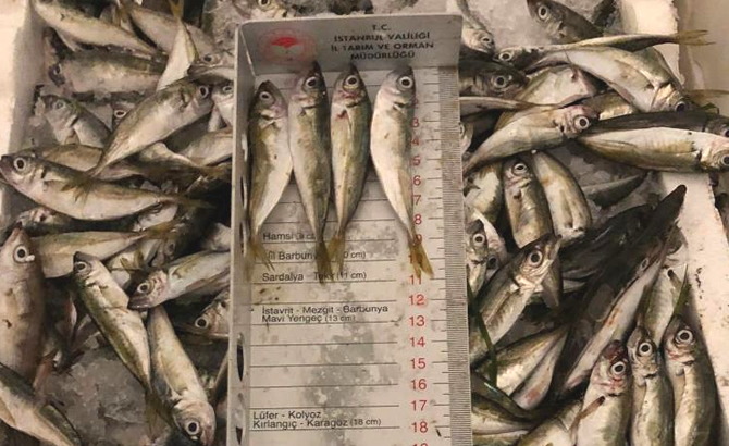 Yapılan denetimde 29 kasa içerisinde yaklaşık yarım ton istavrit balığına boy yasaklarına aykırı avlanıldığından dolayı el konuldu.