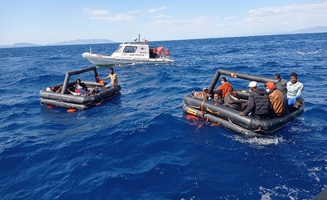 Foça ilçesi Aslanburnu açıklarında 2 can salı içerisinde bulunan ve Yunanistan unsurlarınca Türk karasularına geri itildiği tespit edilen 29 düzensiz göçmen, 2 Sahil Güvenlik botu tarafından kurtarıldı.