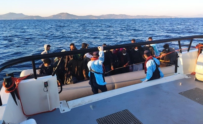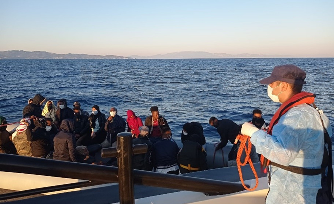 Sahil Güvenlik Komutanlığı ekipleri, Dikili ilçesi açıklarında can salı içerisinde bir grup düzensiz göçmenin olduğuna yönelik bilgi edindi. Görevlendirilen Sahil Güvenlik botu tarafından, Yunanistan unsurlarınca Türk kara sularına geri itilen can salı içerisindeki 44 düzensiz göçmen kurtarıldı.