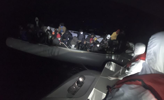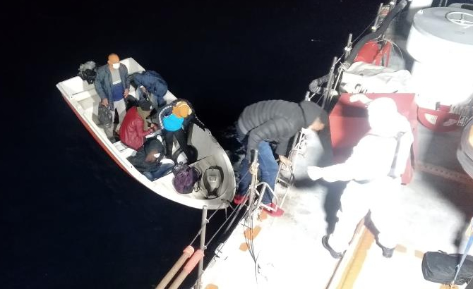 Sahil Güvenlik Komutanlığı ekipleri, Urla ilçesi açıklarında lastik bot içerisinde bir grup düzensiz göçmen olduğu bilgisinin alınması üzerine harekete geçti. Lastik bot içerisinde yasa dışı yollarla yurt dışına çıkmak istediği belirlenen 30 düzensiz göçmen, görevlendirilen Sahil Güvenlik botu tarafından yakalandı.