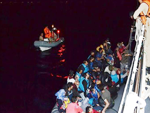 Sahil Güvenlik Komutanlığı ekipleri, İzmir'in Seferihisar ilçesi Doğanbey Mahallesi açıklarında lastik bot ile yasadışı yollardan Yunanistan adalarına geçmeye çalışan kaçakları fark etti. Harekete geçen ekipler, durdurdukları botta 17'si çocuk, 48 kaçağı yakaladı.