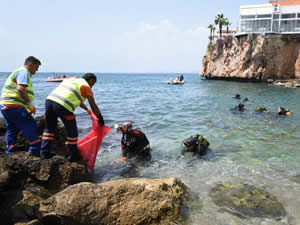 Antalya'da Muratpaşa Belediyesi tarafından düzenlenen Çevre Festivali kapsamında tarihi Kaleiçi Yat Limanı'nda yapılan deniz dibi temizliğinde, sudan kamyon ve otomobil lastiği, plastik ile cam şişe, olta uçları olmak üzeri 10 çuval çöp çıkarıldı.