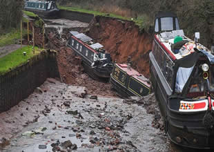 İngiltere’deki Shropshire Kanalı'nda meydana gelen set çökmesi sonucu dev bir obruk oluştu. Olayda çok sayıda tekne çukura düştü