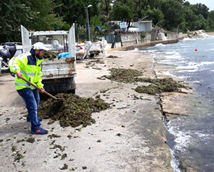 Sabahın ilk saatleri ve akşamüstü saatlerinde gerçekleştirilen yosun temizliğinde 10 kamyon yosun sahillerden toplandı.
