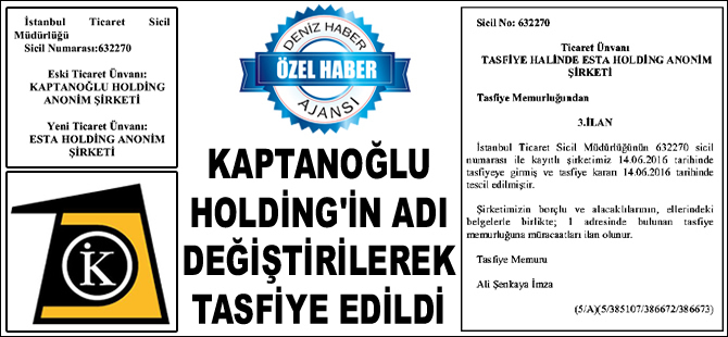 Deniz Haber Ajansı'nın ulaştığı bilgiye göre; Cengiz Kaptanoğlu'nun, Kaptanoğlu Holding'in içini boşaltıp ismini ESTA Holding olarak değiştirmesi ve tasfiye sürecine sokmasının altında, STX Offshore Tersanesi'ne olan 6 milyon dolar borcunu ödememek için hülle operasyonu yaptığı belirlendi.